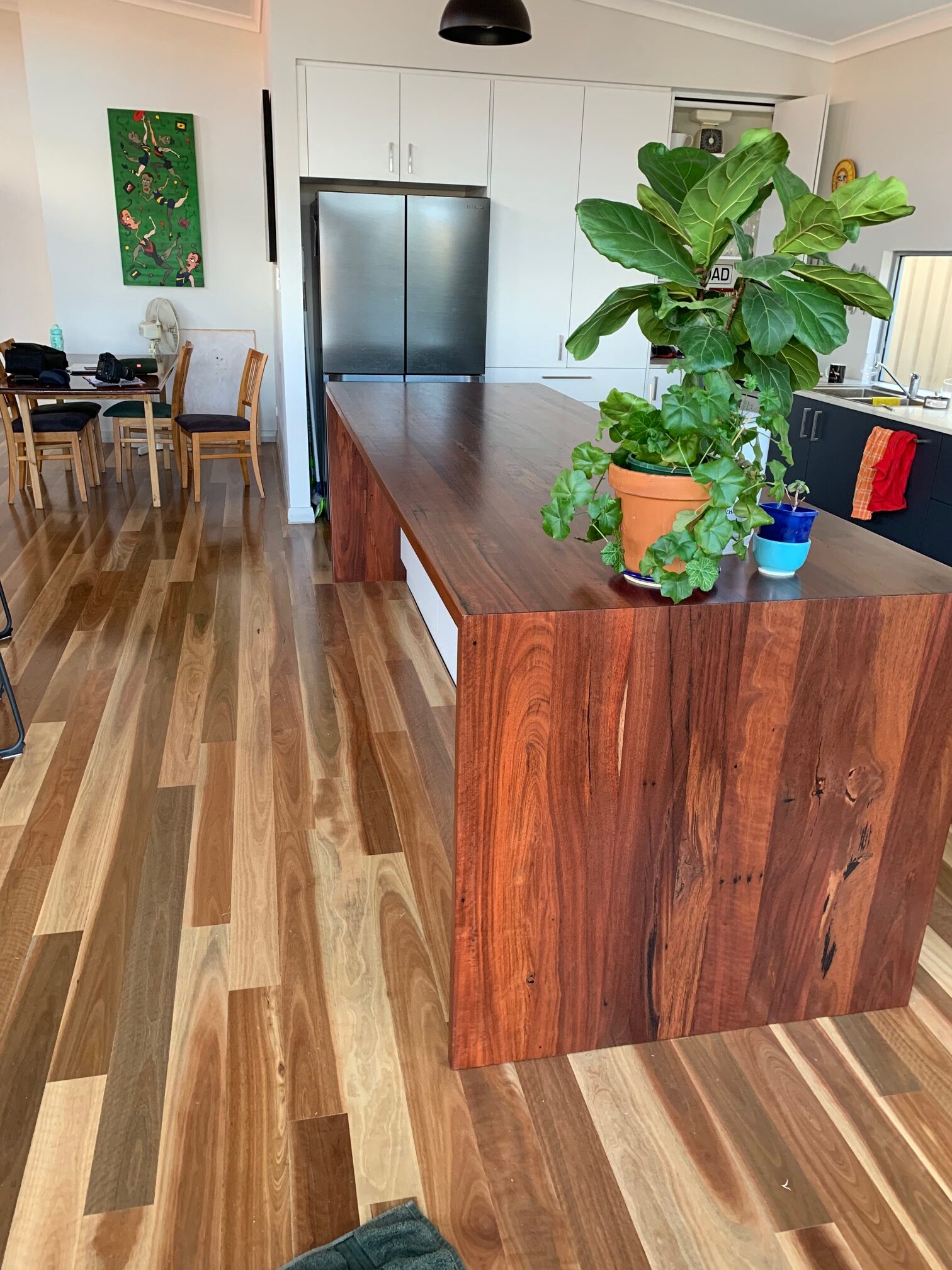Marri Overhead bookshelfMarri Overhead Kitchen Cabinet #1Marri Overhead Cabinet #2Ex Sydney wharf timber for custom kitchen counter topVertical external cladding to new construction- Jarrah sourced from previous home on siteMarri (re-milled) flooring sealed in livos timber oil sealerJarrah double sliding doors custom manufacturedbespoke flyscreen doors designed for functionality in situbirds eye view W.A. Blackbutt bespoke stairsW.A. Blackbutt timber stairs- custom madeJarrah flooring and jarrah clad (concrete) stairs in re-purposed timber from original siteBespoke re-milled Jarrah blanket box for patio settingBespoke Kauri pine table from recovered tree from siteEastern states Blackbutt counter top-timber sourced ex Sydney wharfRemilled jarrah decking to above ground poolre-milled, prize awarded, jarrah decking to pool